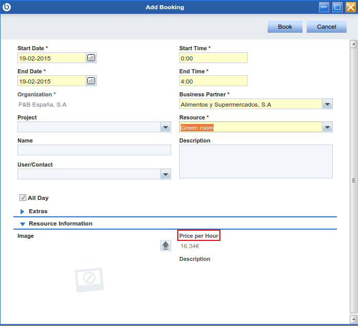 | Description | Currently it is possible to manage resource reservations in the "Resource Reservation" widget for hourly an daily intervals. But the price of the reservation is calculated considering only the price per hour (See attached). It would be nice of the price of the reservation could be calculated considering other time units like daily or monthly. | |||||||||||