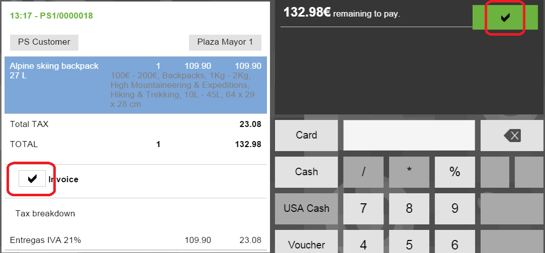 Note (as shown in the attached screenshot) that two tick icons are shown on screen. Left one (the wrong one) is used to cancel the invoicing, while the other means that everything is ok and the process can continue.