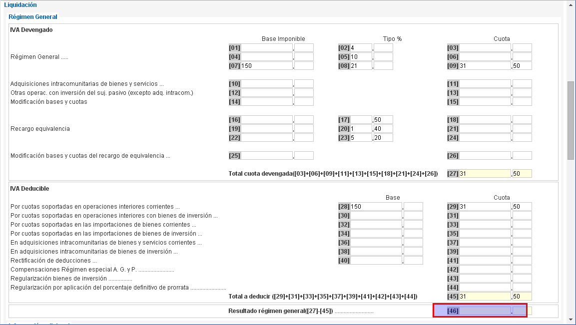 Go down and realize that the box [46] Resultado régimen general is empty or blank and that should not be the case. It should shown 0.00. See image attached.