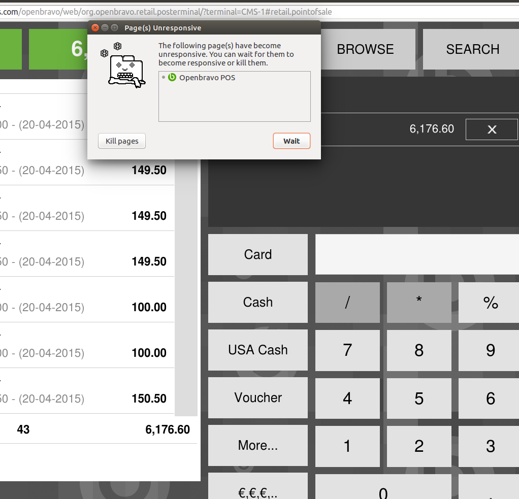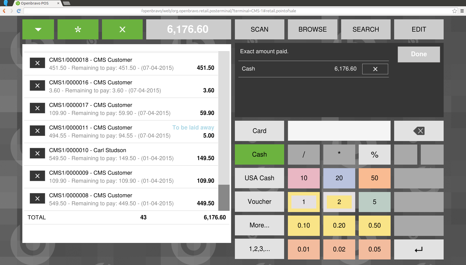 4-Now, click Total Amount button, OK (tick) button, and then Done to complete the payment. Defect: Browser gets stuck.