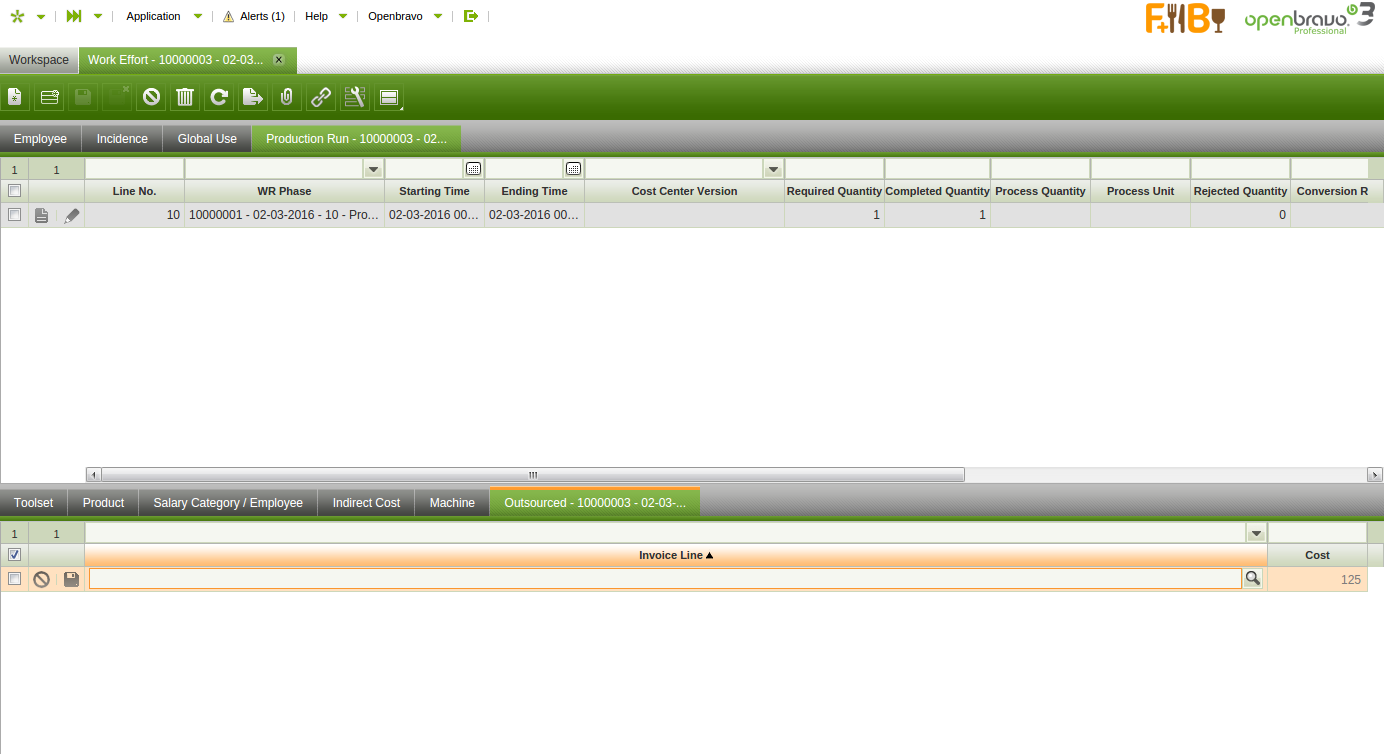 | Description | Invoice Line field of the Work Effort - Production Run - Outsourced tab should be editable although the document is processed. Only the cost field is taken into account when calculating the cost of the transaction | |||||||
