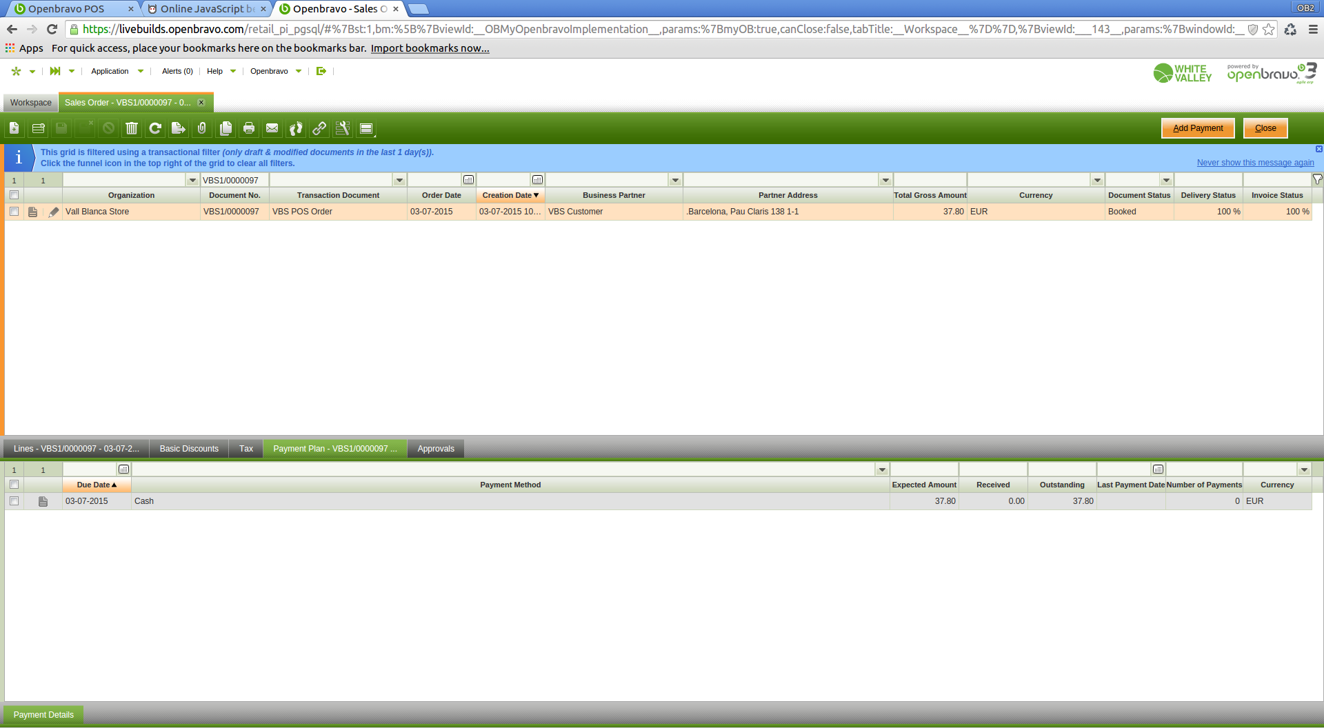 Repository: erp/pmods/org.openbravo.retail.posterminal Changeset: 8c2d9af11a45cfab5978a28013a4c8cf21a44071 Author: Antonio Moreno <antonio.moreno <at> openbravo.com> Date: Tue Jul 07 11:11:40 2015 +0200 URL: http://code.openbravo.com/erp/pmods/org.openbravo.retail.posterminal/rev/8c2d9af11a45cfab5978a28013a4c8cf21a44071 [^] Related to issue 30309. Scrim will also be applied on the multiorders flow. --- M web/org.openbravo.retail.posterminal/js/pointofsale/model/pointofsale-model.js M web/org.openbravo.retail.posterminal/js/pointofsale/view/payment.js --- |