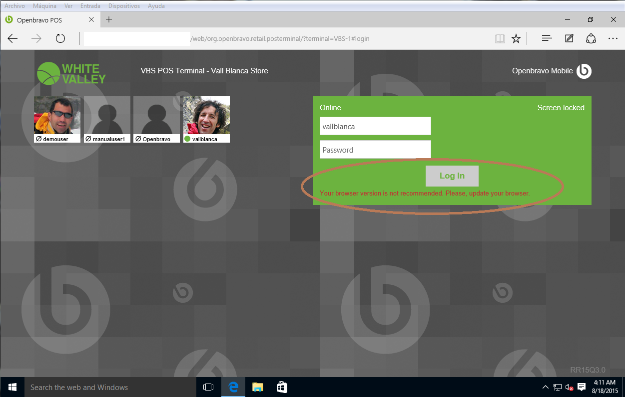 | Summary | 0030597: [RR15Q3] POS must warn clearly that it is not compatible with Edge browser | |||||||||||