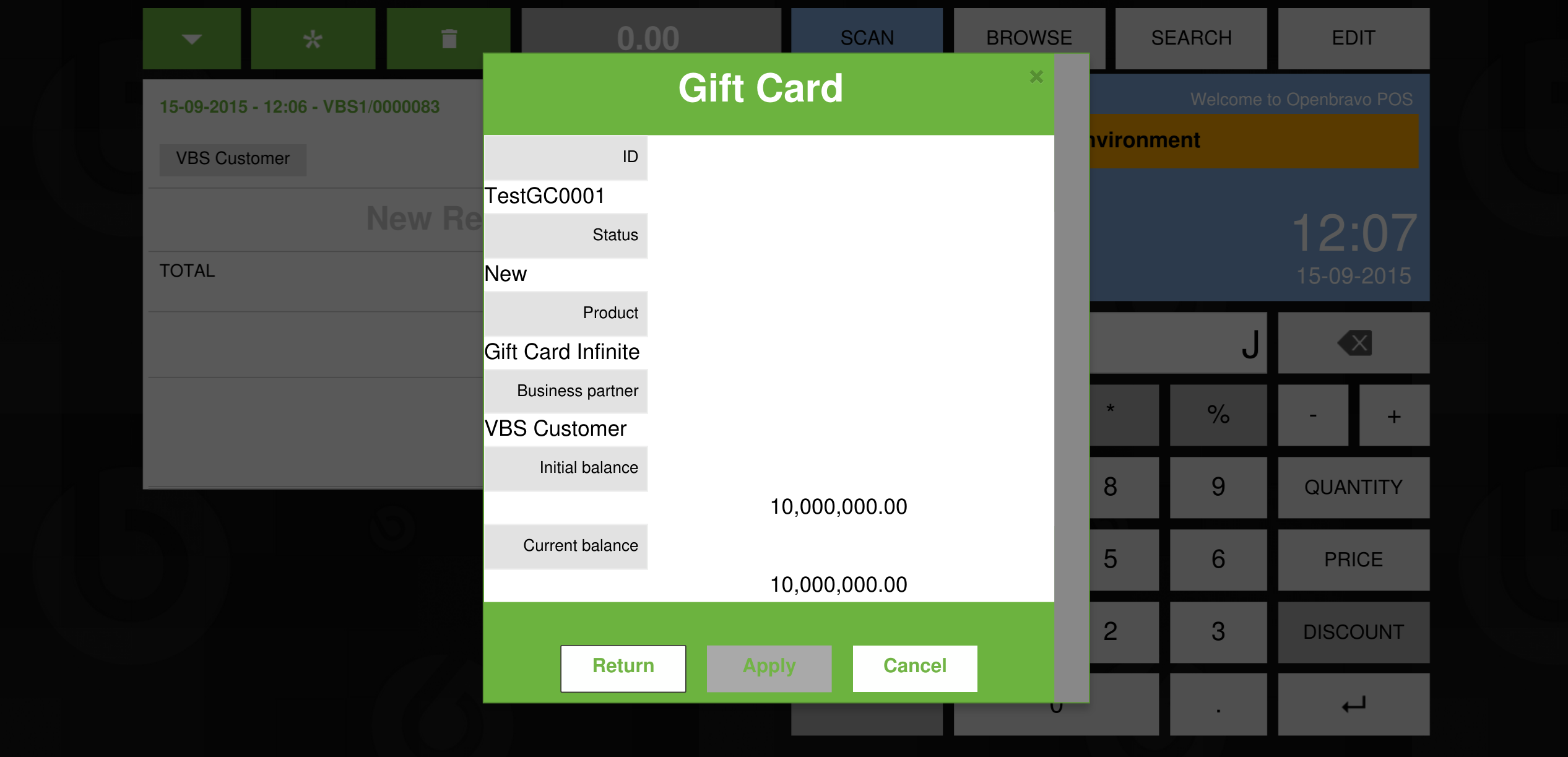 | Steps To Reproduce | Install gift card module Create gift card Search for gift card and click it to see its details Gift card docs: http://wiki.openbravo.com/wiki/Retail:Gift_Cards_and_Gift_Vouchers [^] | |||||||