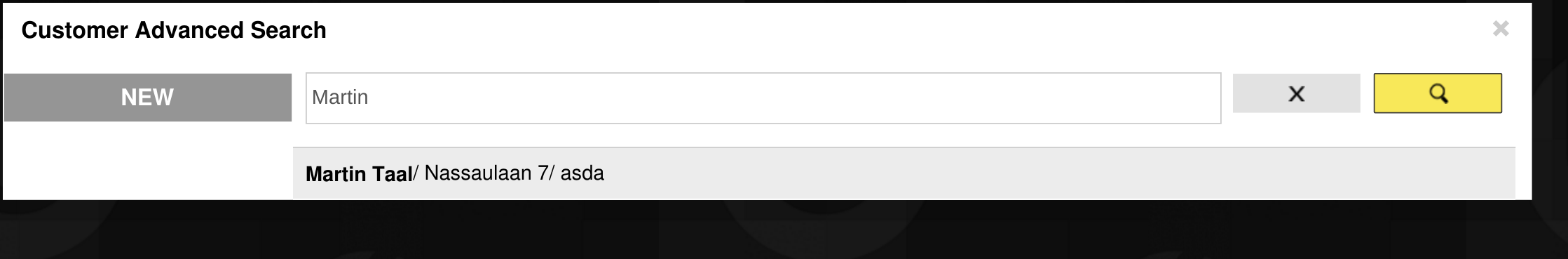 Then open customer search, search using the streetname: Nassaulaan