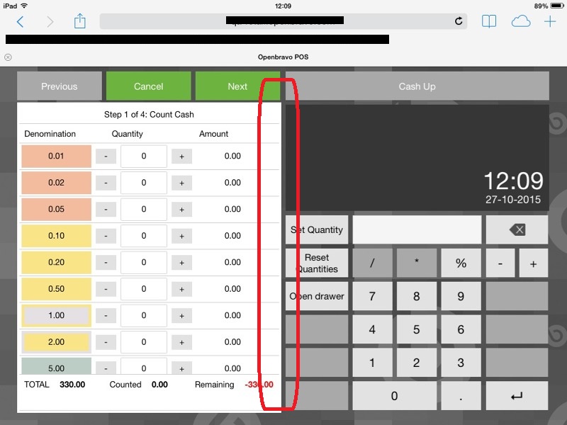 DescriptionWhen executing a Cash up process, the list of bank notes has not scrolling, so I cannot count high value notes.