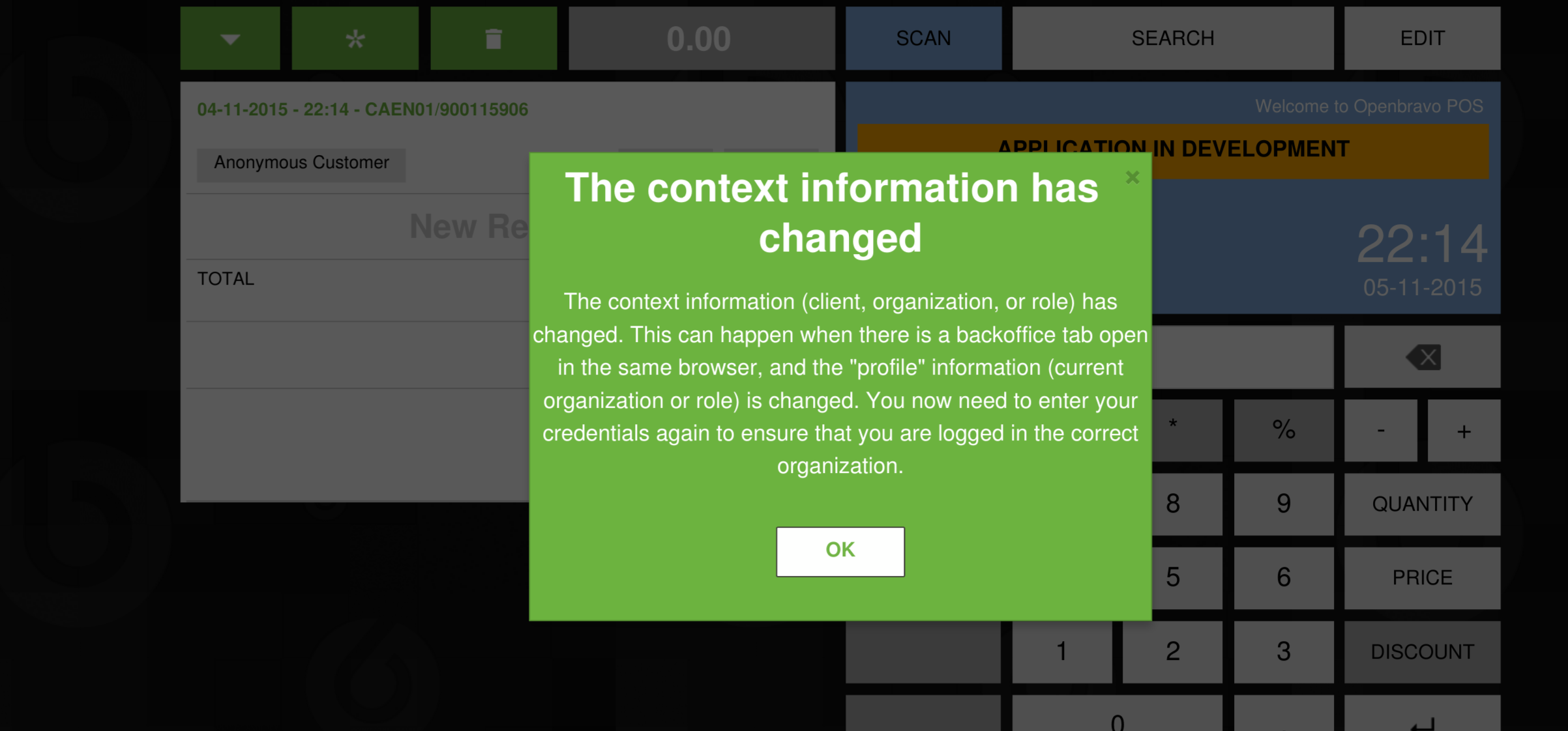 DescriptionA user logs into WebPOS, multi-server architecture is enabled, after logging in quickly the context changed info message is shown.