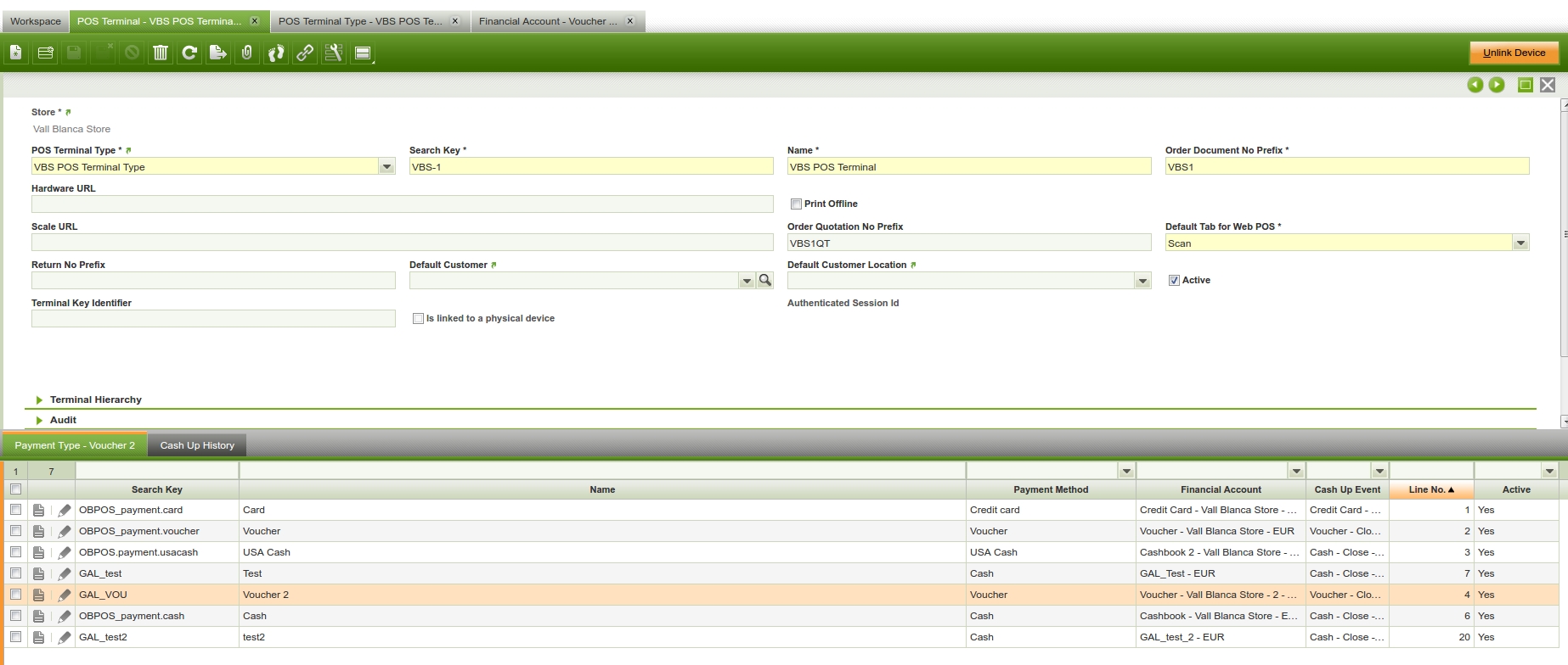 | Steps To Reproduce | ERP Navigate to the terminal and then to the associated terminal type ensure that field "payment Method" is filled with cash. It means that cash payment type will be used as a default payment type In terminal type window add a new payment method for credit. In Terminal window add 3 new payment types for credit payment method. In my example (GAL0, GAL1, GAL2) Change the lineNo of cash payment type from 10 to 80 Web POS Login into web POS Add a product to the ticket Press pay button Here you will see that more button is selected by default (green) because default payment method is "inside" more. Using screen keyboard Press 10€ note and press "enter" 10 will be added for cash Press card payment type and using screen keyboard Insert an amount (10) and then press enter or press again card button 10 will be added to card Error 1: press a number and then enter (using screen keyboard) -> An error is shown Error 2: More button is not green. Default payment type should be selected again | |||||||