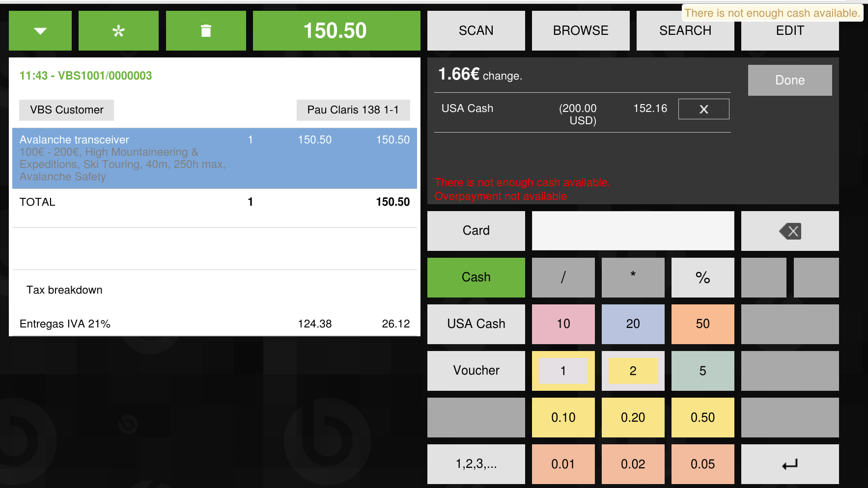 If you add an overpayment with USA Cash (With allow overpayment = N) and try to complete ticket by giving the change in Cash it it not possible