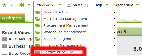 | Steps To Reproduce | Login as Openbravo Admin Open the Application menu An entry called "Service Price Rule" is shown in the menu root. See screenshot | |||||||