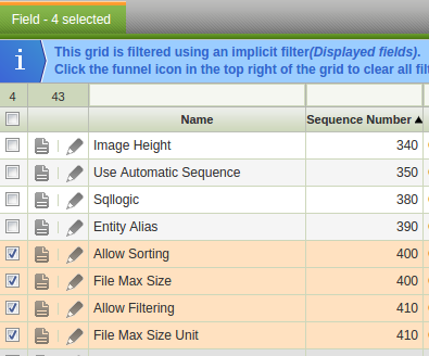 Problem caused by Services project merge which adds new fields with same Sequence Number than Allow sorting and allow filtering (see attached screenshot) |