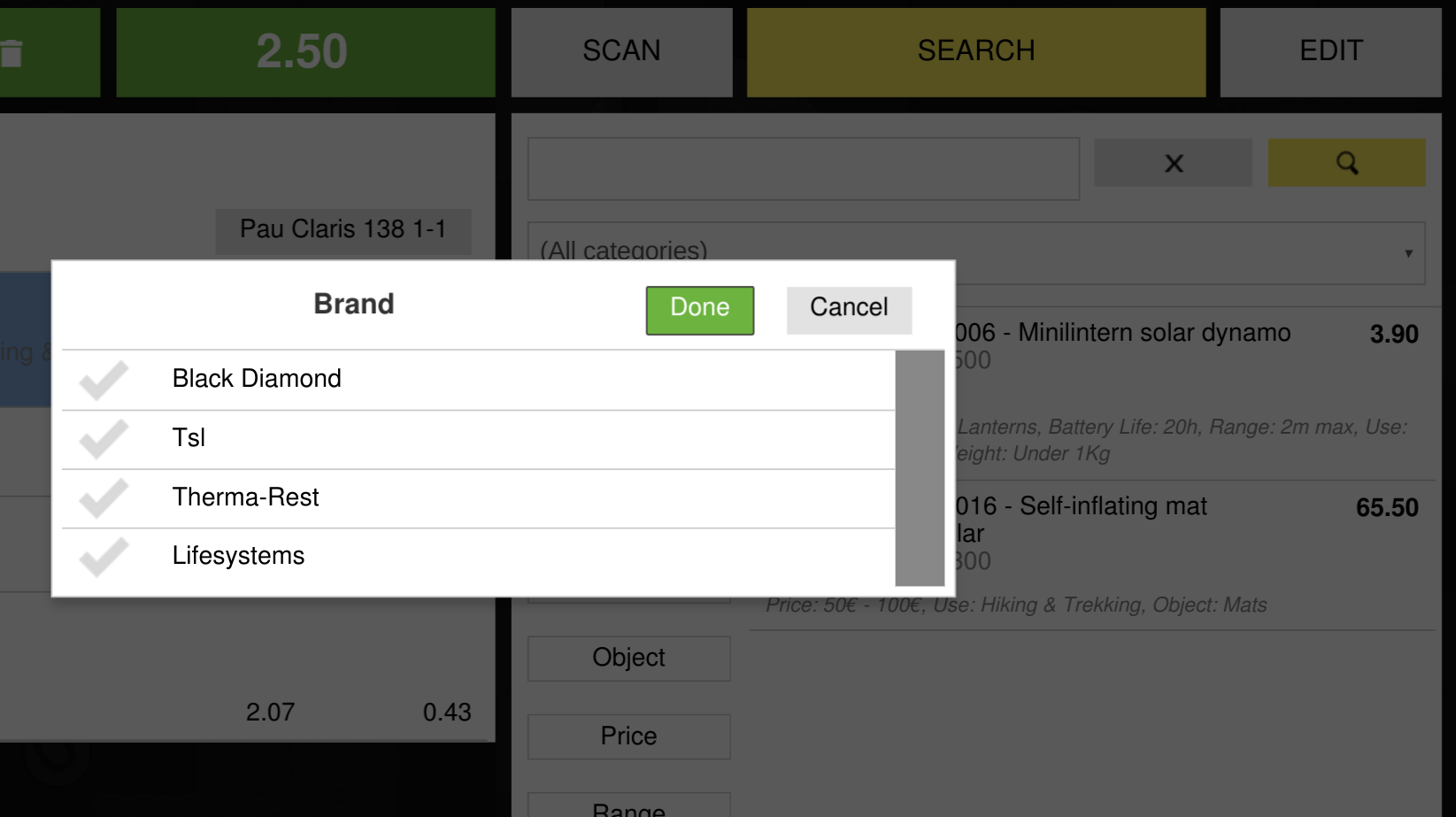 -Tap on brand button, notice that all brands are shown