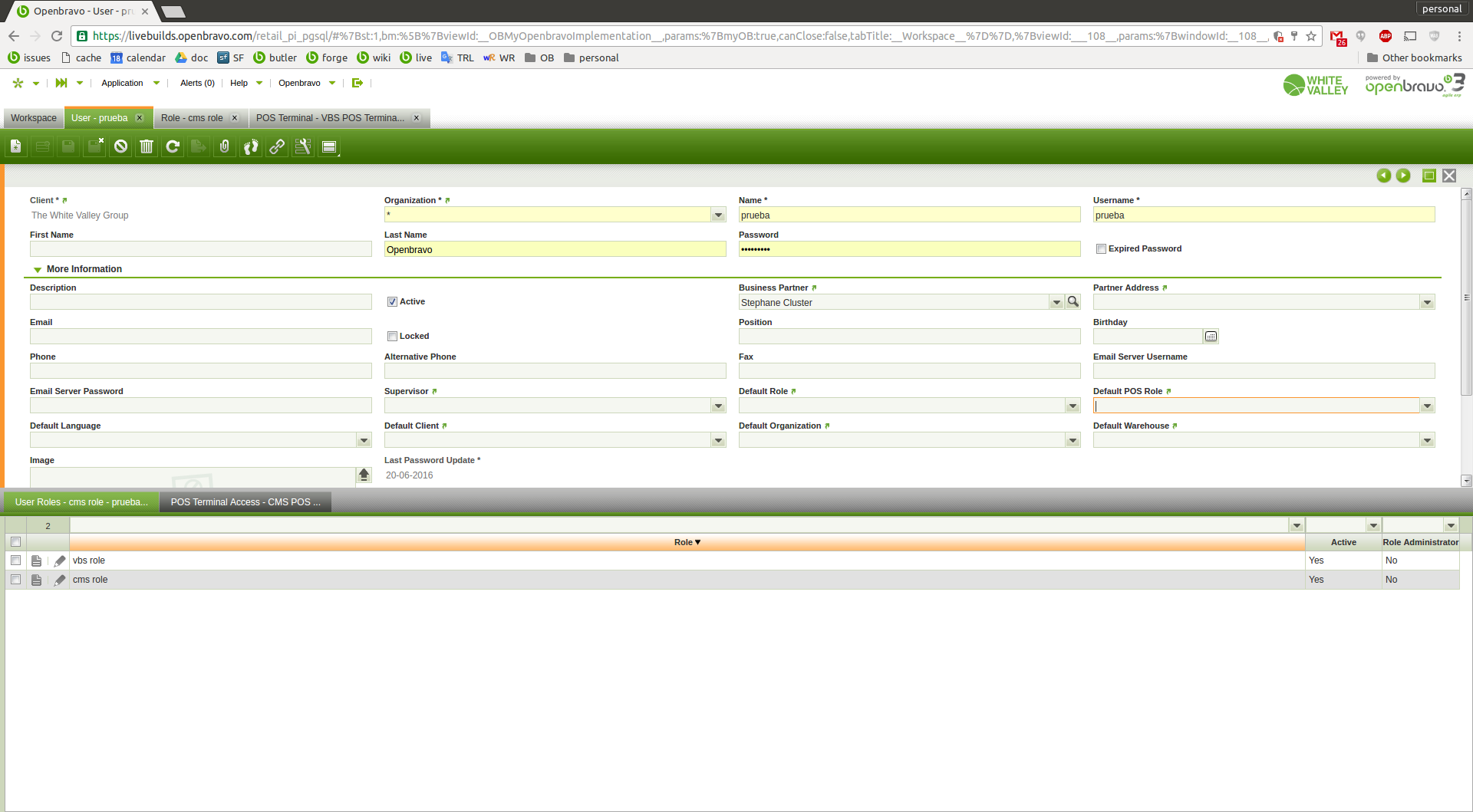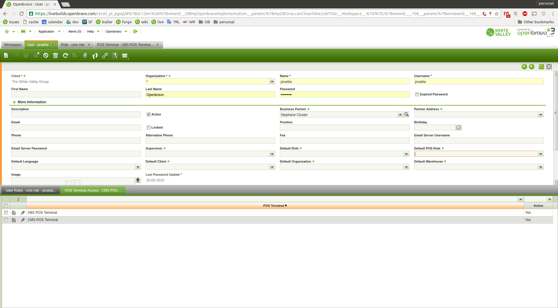. do login with user "prueba" in VBS-1 terminal -> it works