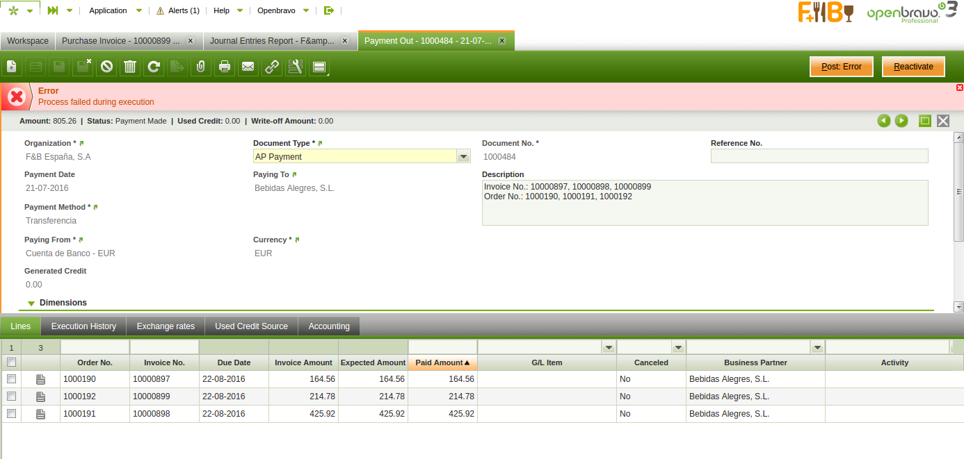 | defect | [Openbravo ERP] 09. Financial management | major | always | 2016-07-20 12:52 | 2016-08-11 18:40 | |||