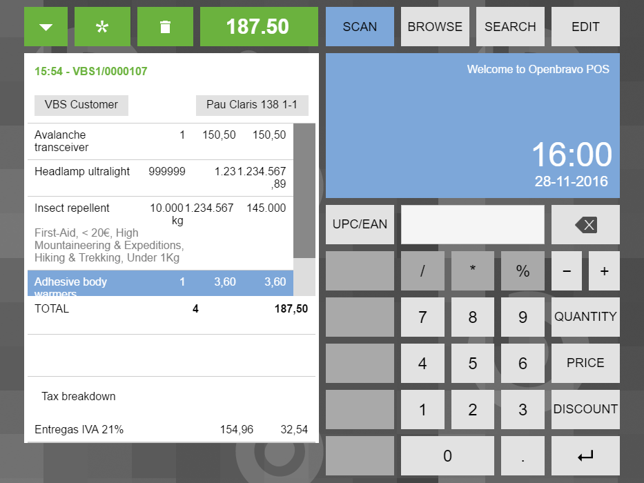 Repository: erp/pmods/org.openbravo.retail.posterminal Changeset: 80b0433fad39092f61b92d35efd6ca22d714dd00 Author: Miguel de Juana <miguel.dejuana <at> openbravo.com> Date: Fri Dec 02 12:36:04 2016 +0100 URL: http://code.openbravo.com/erp/pmods/org.openbravo.retail.posterminal/rev/80b0433fad39092f61b92d35efd6ca22d714dd00 [^] Fixed issue 0034648: [UX] Ugly line breaks in the 'Receipt' with high prices - Adapt components to use classes and to resize font - Add classes to show properly depending the aspect ratio --- M web/org.openbravo.retail.posterminal/css/obpos-main.css M web/org.openbravo.retail.posterminal/js/components/order.js M web/org.openbravo.retail.posterminal/js/components/renderorderline.js --- |