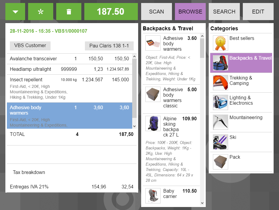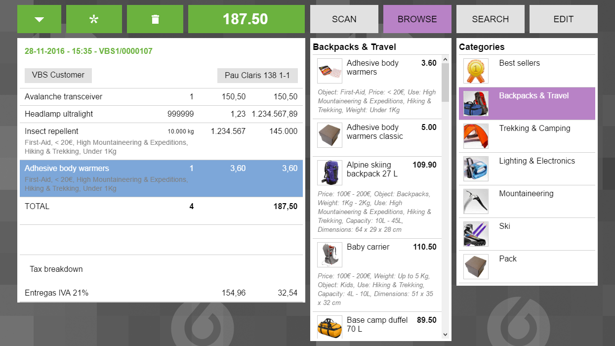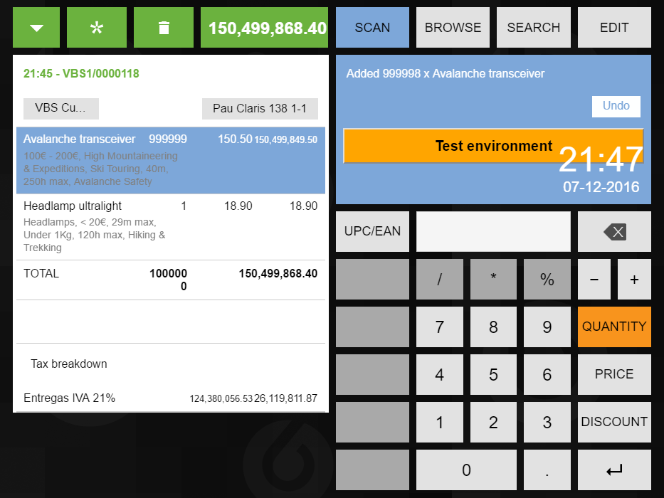 | Steps To Reproduce | Set 393x700 screen resolution and add a line to the receipt with thousands of products. | |||||||