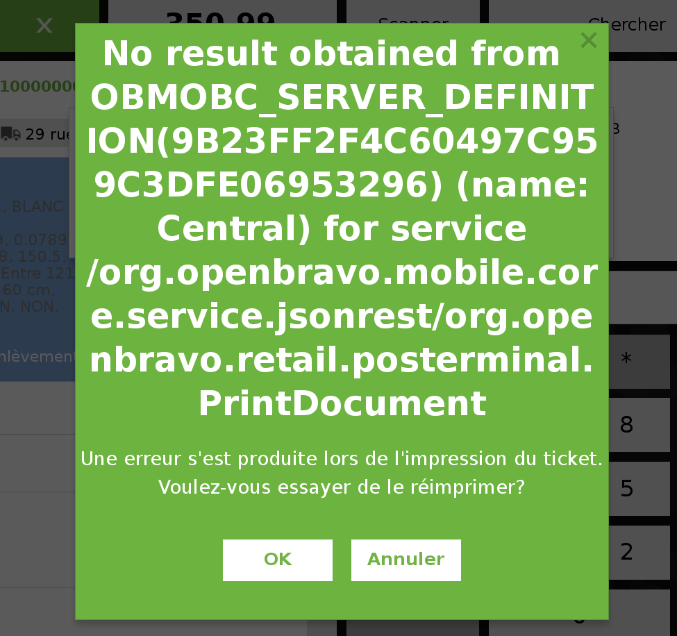 When the central server is offline it is not possible to print but the error shown to the user is not friendly. See screenshot.