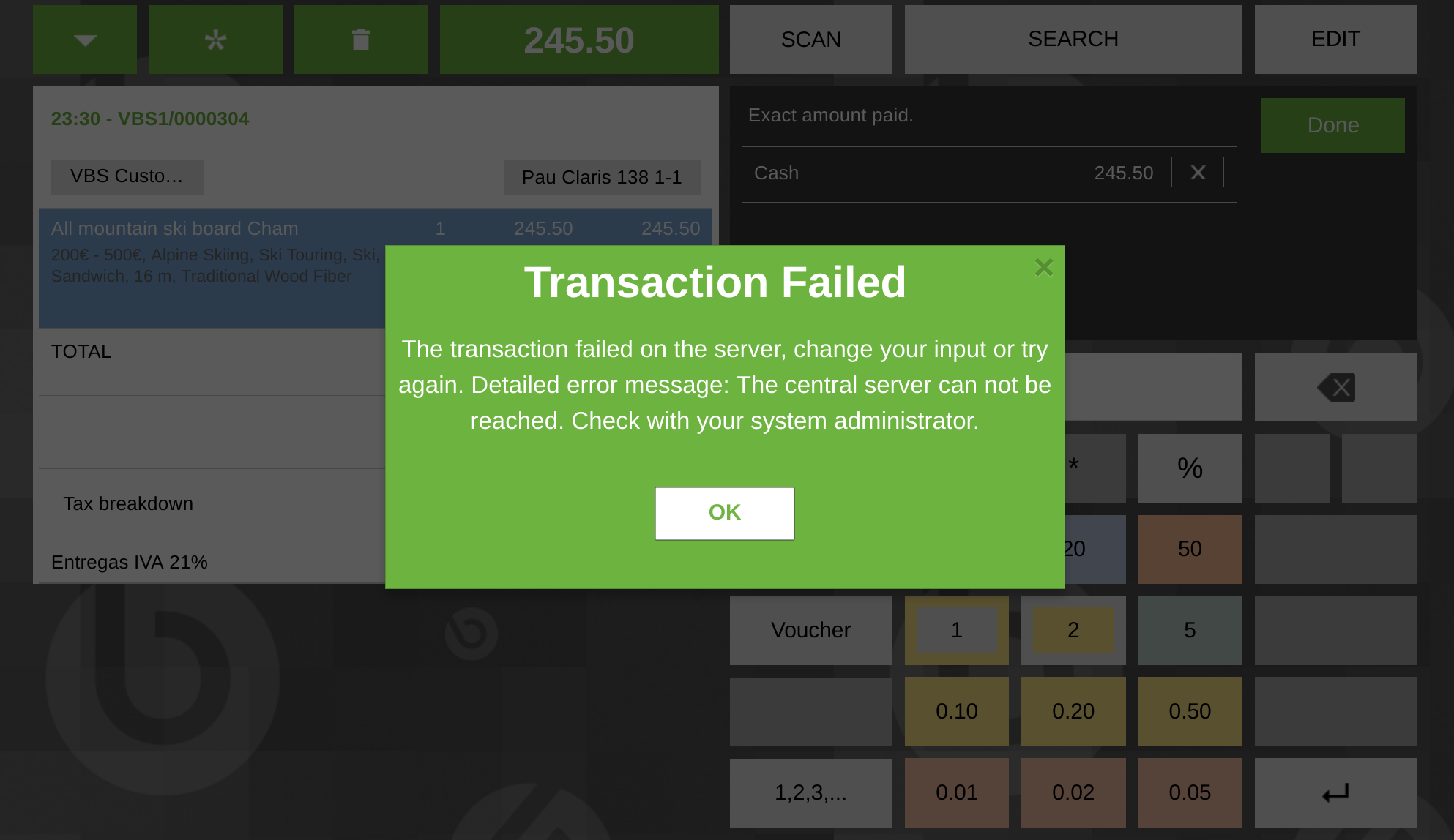 Try to print a invoice with central offline