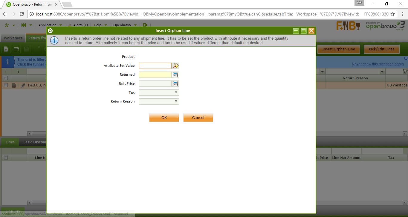In the popup Insert Orphan Lines, the field Product is not shown, therefore they can not complete all of the steps to reproduce this issue. See the attached image. |