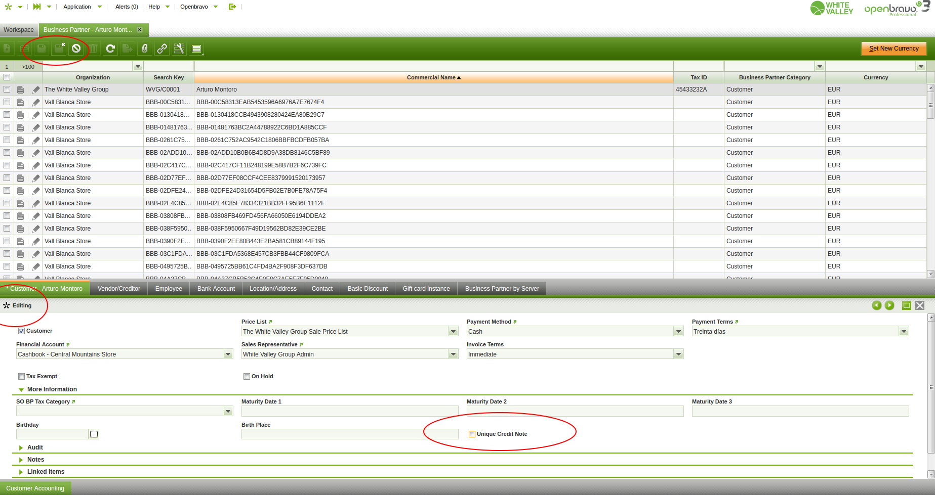 | Steps To Reproduce | 0-Login POS backend as Openbravo and, using The White Valley Group Admin role, go to Business Partner window. 1-Select the record which commercial name is Arturo Montoro. 2-Go to Customer tab and in "More Information" section uncheck (or check if it is unchecked) "Unique Credit Note". Try to save. -> ERROR in openbravo.log: 67690902 2017-05-08 13:12:11,706 [ajp-bio-127.0.0.1-8009-exec-5] ERROR org.openbravo.service.json.DefaultJsonDataService - Error updating object java.lang.NullPointerException at org.openbravo.retail.storeserver.synchronization.eventhandler.BusinessPartnerEventHandlerForStandardCustomerFlag.defaultStoreHasBeenModified(BusinessPartnerEventHandlerForStandardCustomerFlag.java:93) at org.openbravo.retail.storeserver.synchronization.eventhandler.BusinessPartnerEventHandlerForStandardCustomerFlag.onUpdate(BusinessPartnerEventHandlerForStandardCustomerFlag.java:72) at sun.reflect.GeneratedMethodAccessor549.invoke(Unknown Source) at sun.reflect.DelegatingMethodAccessorImpl.invoke(DelegatingMethodAccessorImpl.java:43) at java.lang.reflect.Method.invoke(Method.java:606) | |||||||