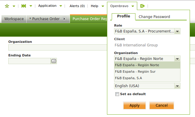 | Steps To Reproduce | Create a new Reference: * Name = My org * OBUISEL_Selector Reference Defined Selector: * Table = Organization * Selector Template Create a new Reference: * Name = My bp * OBUISEL_Selector Reference Defined Selector: * Table = BusinessPartner * Selector Template Create a new Process Definition: * UI pattern = Report * Data access level = client/org * Enter any class Enter parameter "Organization": * Mandatory = N * DBColumnName = "inpAdOrgId" <- this makes other params to be treated as subordinate for it * OBUISEL_Selector Reference * Link to "My org" Enter parameter "Business Partner": * Mandatory = N * OBUISEL_Selector Reference * Link to "My bp" Create a new menu entry and link it to the process definition. Add the process definition to role "F&B España - Procurement", which only has access to Spanish organizations. Login with the role "F&B España - Procurement" and launch the process definition created before Check organization selector shows all the organization. It's wrong, it should show only spanish orgs Check business partner selector wrongly shows US business partners in case in organization selector US org is picked. | |||||||