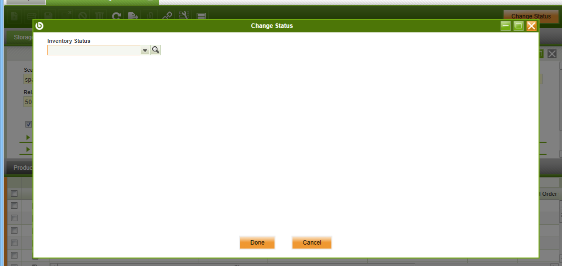 | Steps To Reproduce | 1. Login as QA Testing Admin Role 2. Go to Warehouse And Storage Bins Window 3. Select Spain warehouse 4. Move to Storage Bin Tab and select spain111 5. Move to Bin Contents and check that there are records 6. Move back to Storage Bin Tab, select spain111 and click on Change Status Button Full test case at https://testlink.openbravo.com/testlink/linkto.php?tprojectPrefix=Communit&item=testcase&id=Communit-10629 [^] | |||||||||||