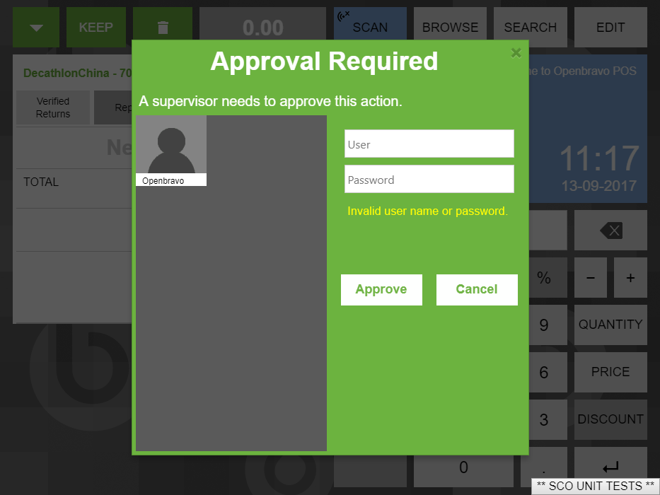 | Steps To Reproduce | Create an approval (for example 'WebPOS Cash up window') and once it be shown, try to enter: * Bad password * Empty password * Not allowed user | |||||||