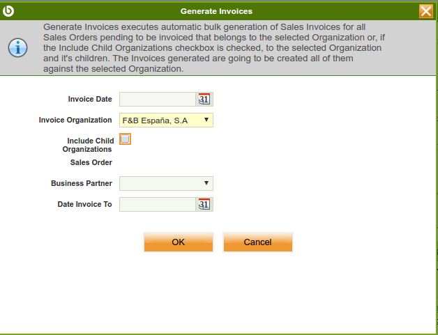 - Navigate to Generate Invoices process (Sales Management | Transaction | Generate Invoices)