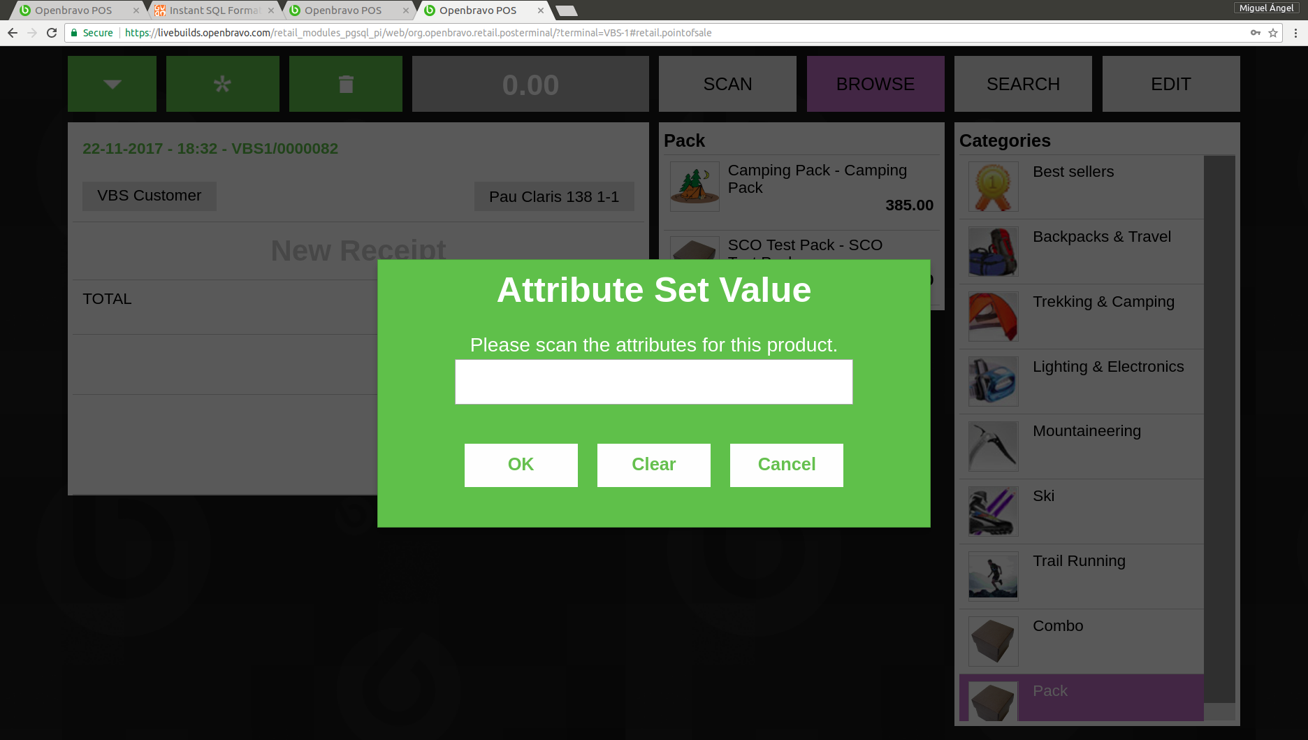 "Web POS Enable support for product attributes" and new pack is added to the ticket, the "attribute set instance" pop up is displayed (see attachment)