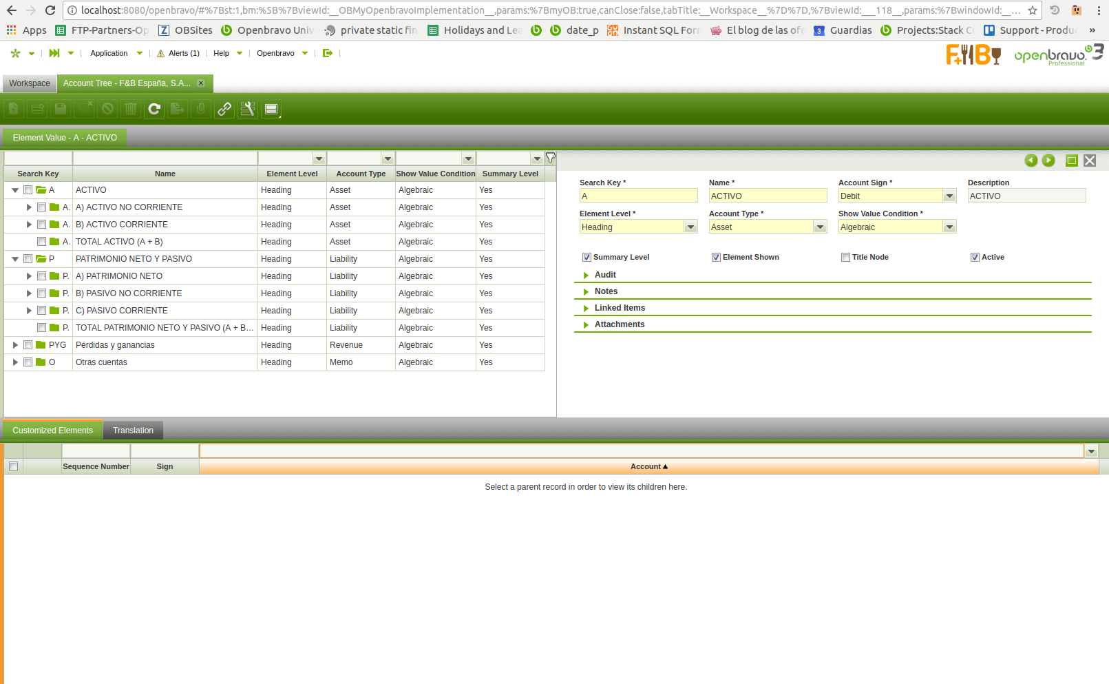 1) Open 'Windows, Tabs and Fields' window and navigate to Account Tree/Element Value: