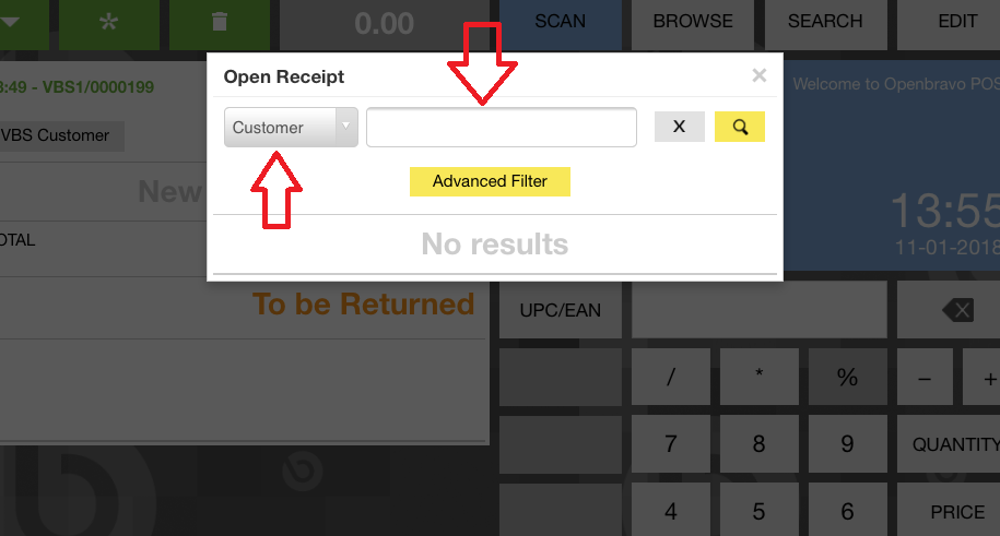 | Description | There are different filters for searching in the "Open Receipt" pop up, some like the Document are text boxes, some like Customer are selectors. When following below steps, I could get Customer field as a text box. | |||||||||||