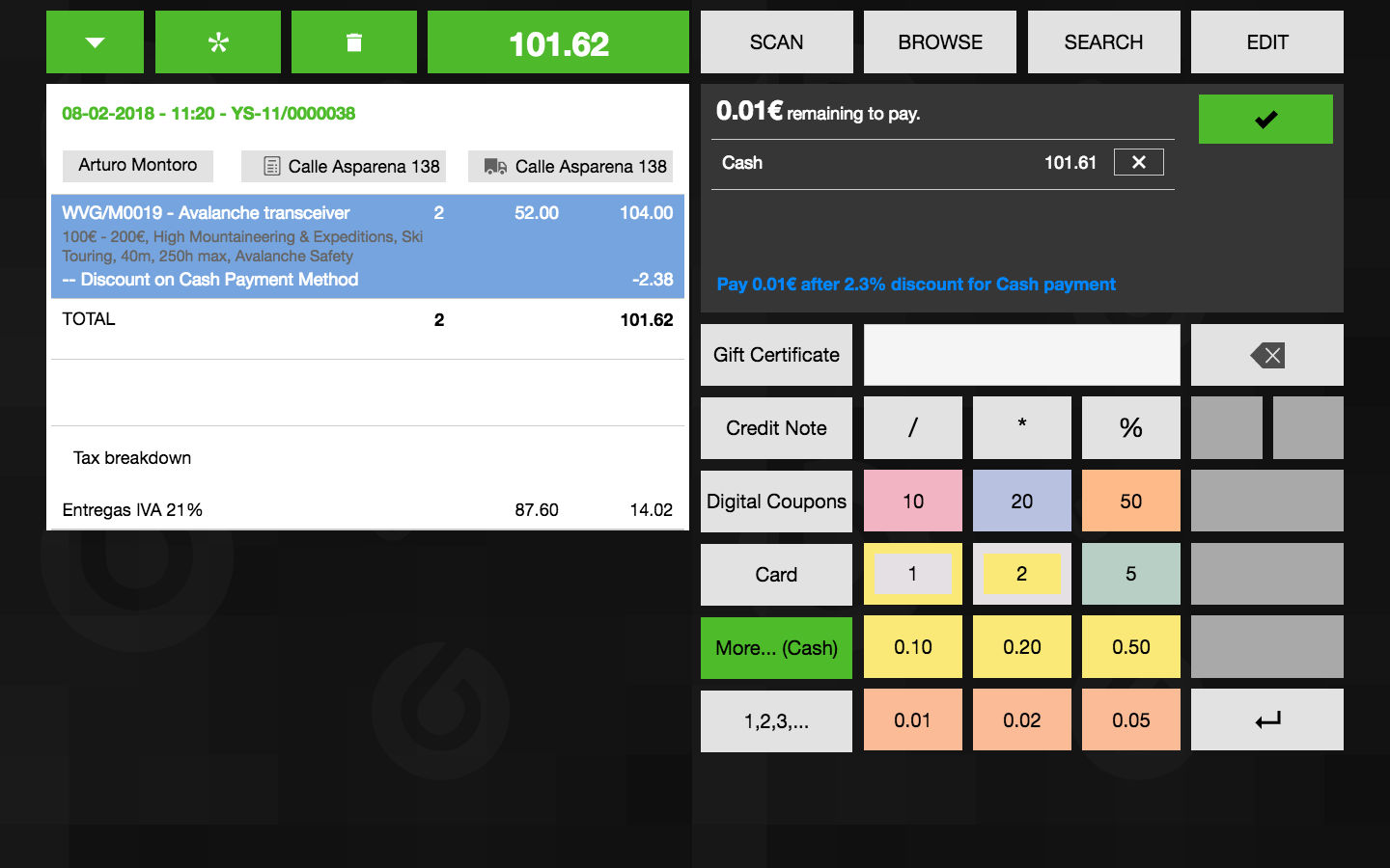 -> Pay with exact cash (Verify Info: Pay 101.61€ after 2.3% discount for Cash payment)