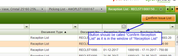 DescriptionButton "Confirm Issue List" should be called "Confirm Reception List". See image.