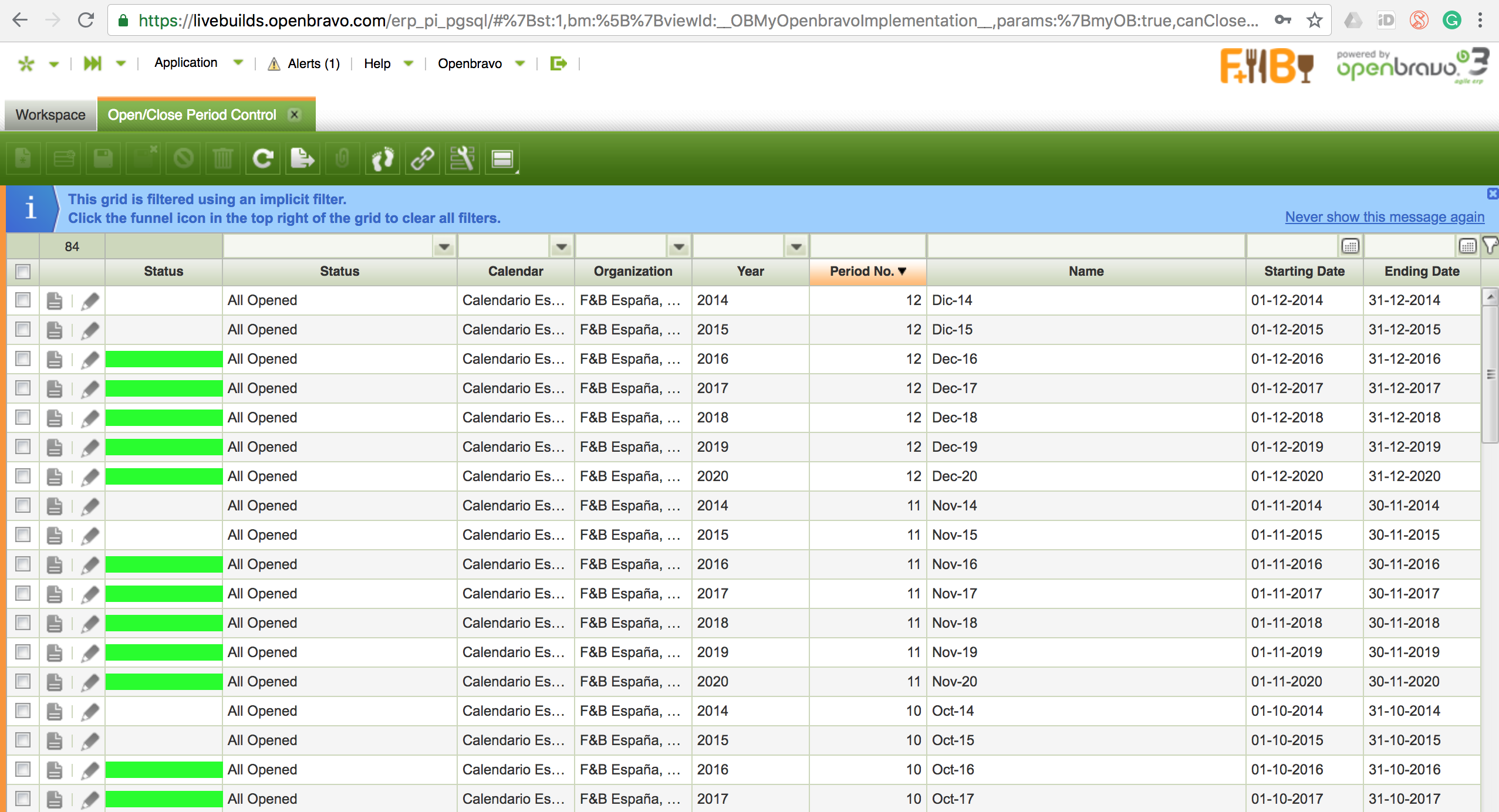 | Steps To Reproduce | Login into livebuilds.openbravo.com/erp_pi_pgsql Navigate to Open/Close Period Control Order by Period No. If everything is ok, change the ordering in the same column sometimes. Column Status will turn blank | ||||||||||