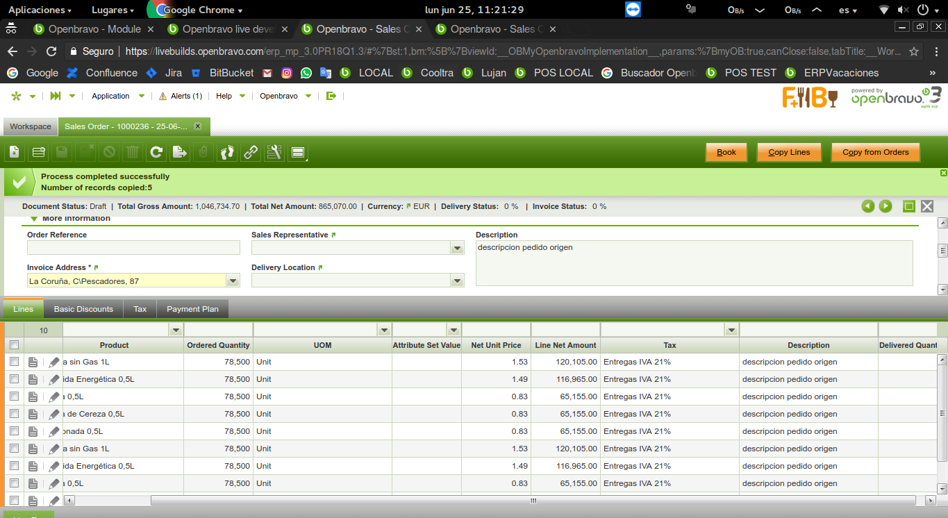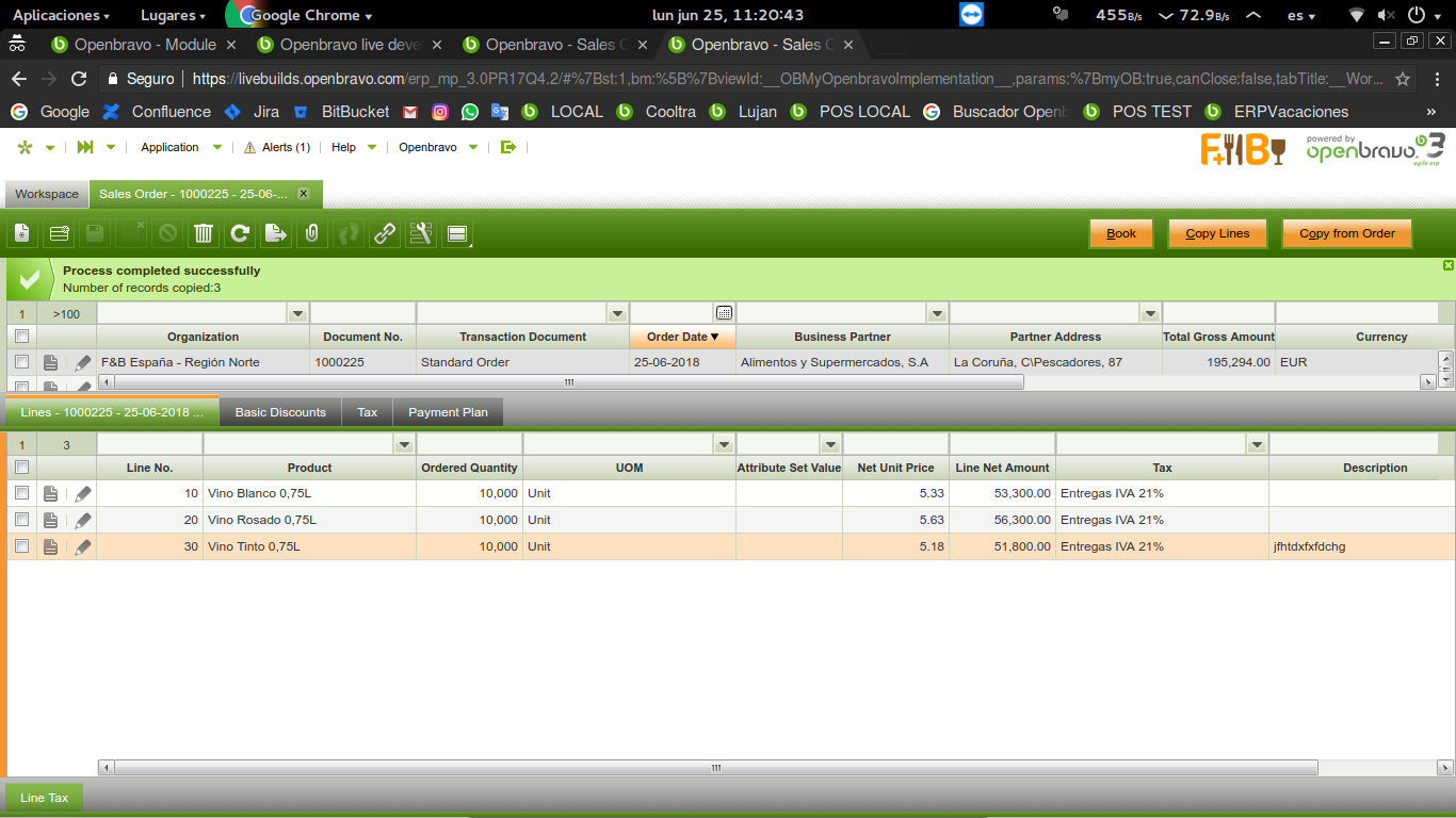 | Description | The "Copy from Order" process in the "Sales Order" window does not work properly: * The line numbers do not match the numbers of the copied order. * The quantities of some products are not the same as those of the copied order. * The descriptions of all the lines are not the same as the original order lines | |||||||