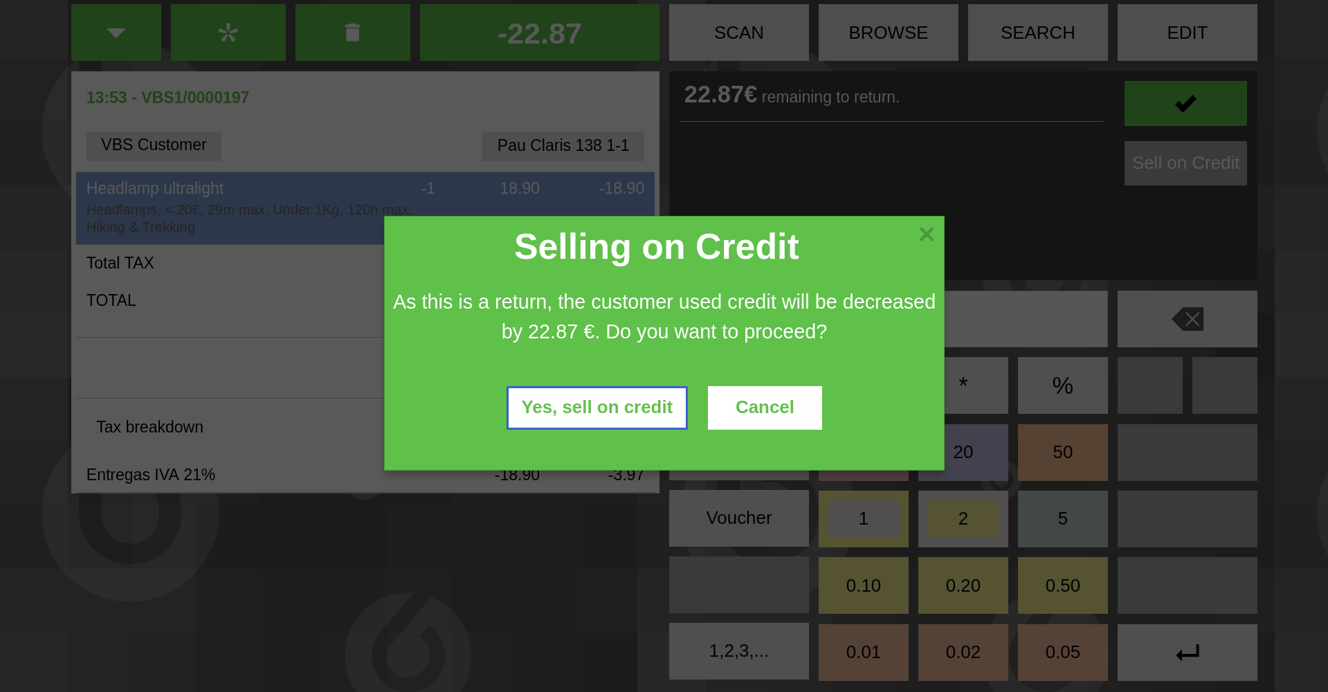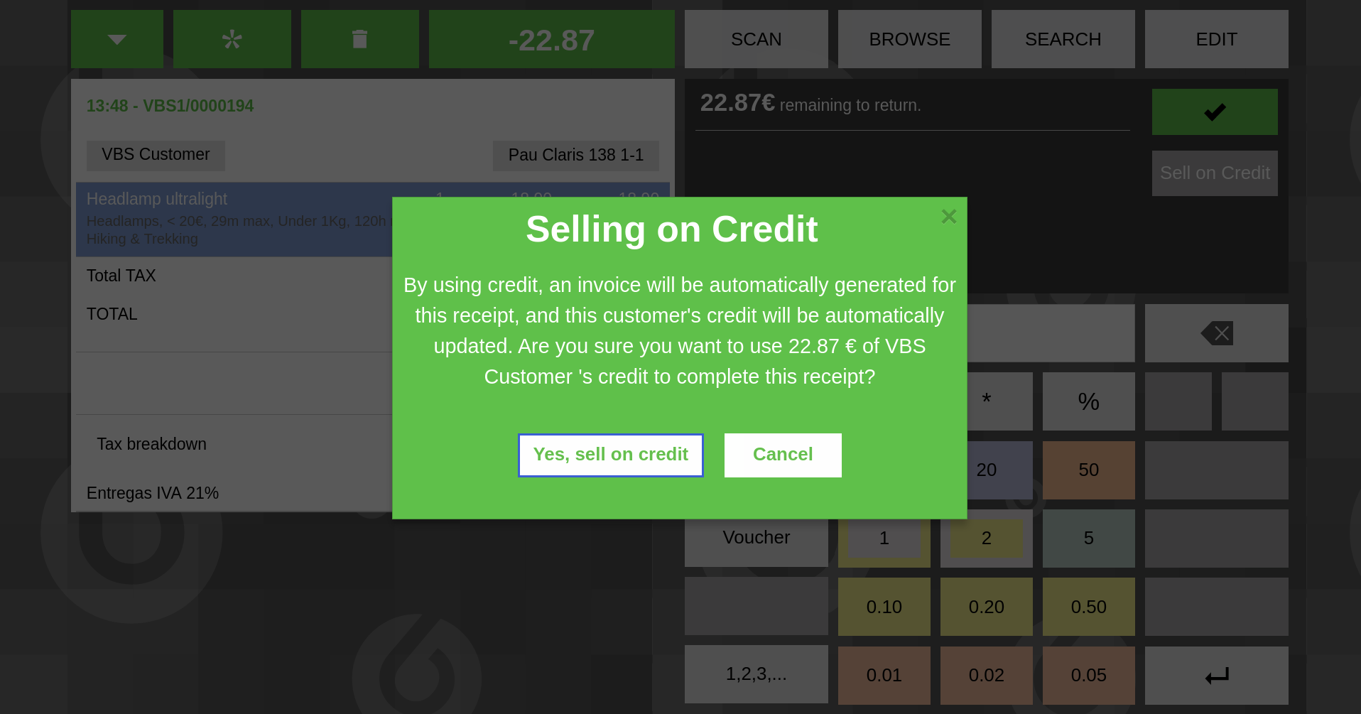3-Click Total Amount button and click on Sell on Credit. Realise the message shown seems to be for a real sell instead of a return.