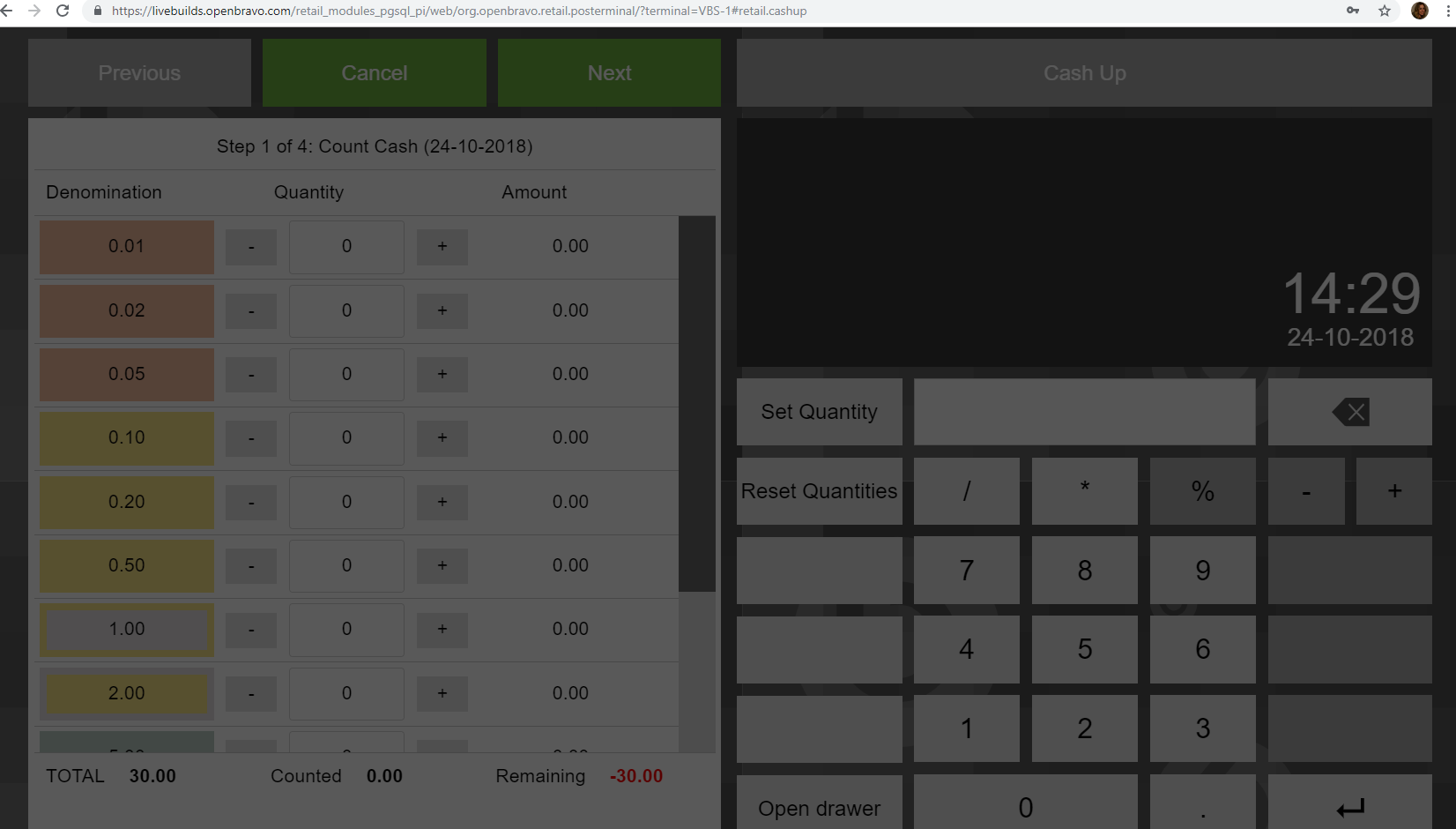 | defect | [Retail Modules] Cash up | major | always | 2018-10-24 14:38 | 2018-11-16 10:52 | |||