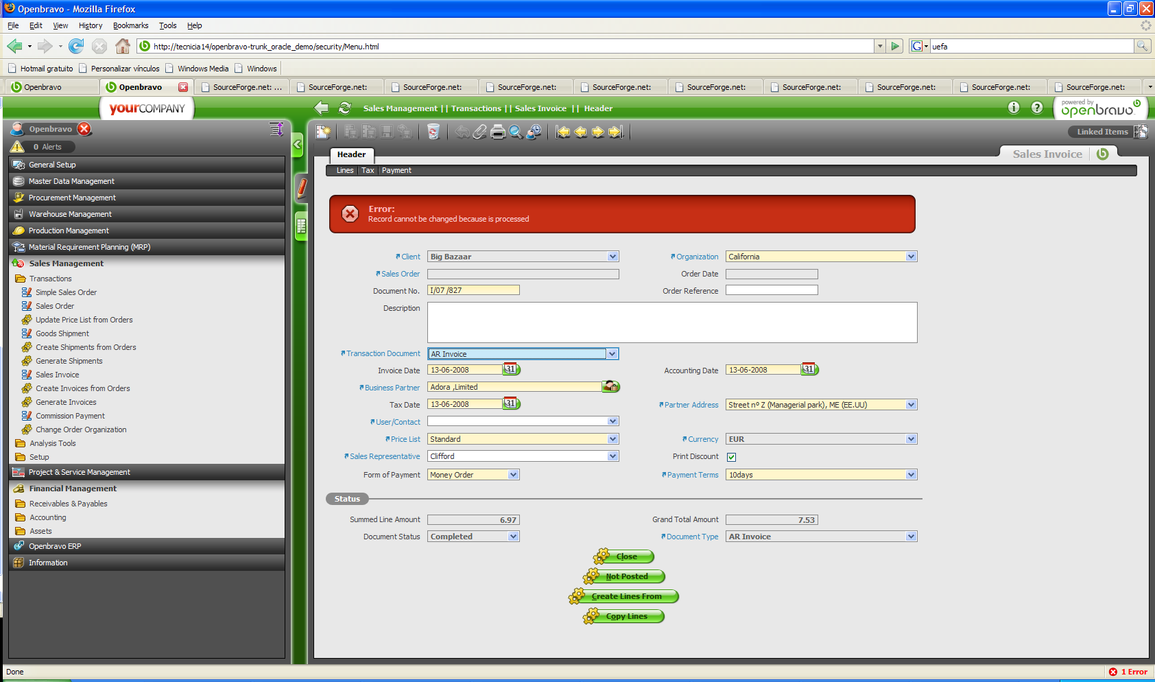 | defect | [Openbravo ERP] 07. Sales management | major | always | 2008-06-13 08:50 | 2008-12-02 13:02 | |||