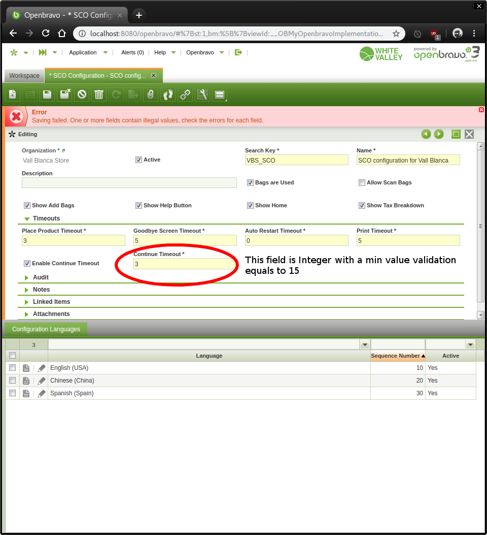 | Description | If a column is defined with validation properties, for example a column type Integer and minimum value 15. If the user tries to save an invalid value in that field the following message is displayed without even marking the field value that does not comply with the validation defined: Error Saving failed. One or more fields contain illegal values, check the errors for each field. See screenshot attached. Note: If the field that does not comply with the validation has the focus when the user press save, the field is marked in red, but if it does not have the focus it is not marked in red. | |||||||