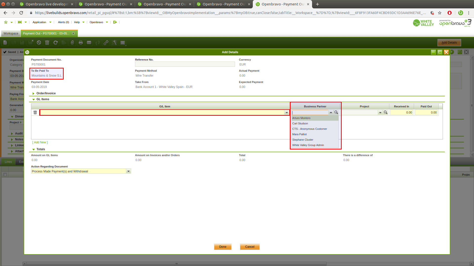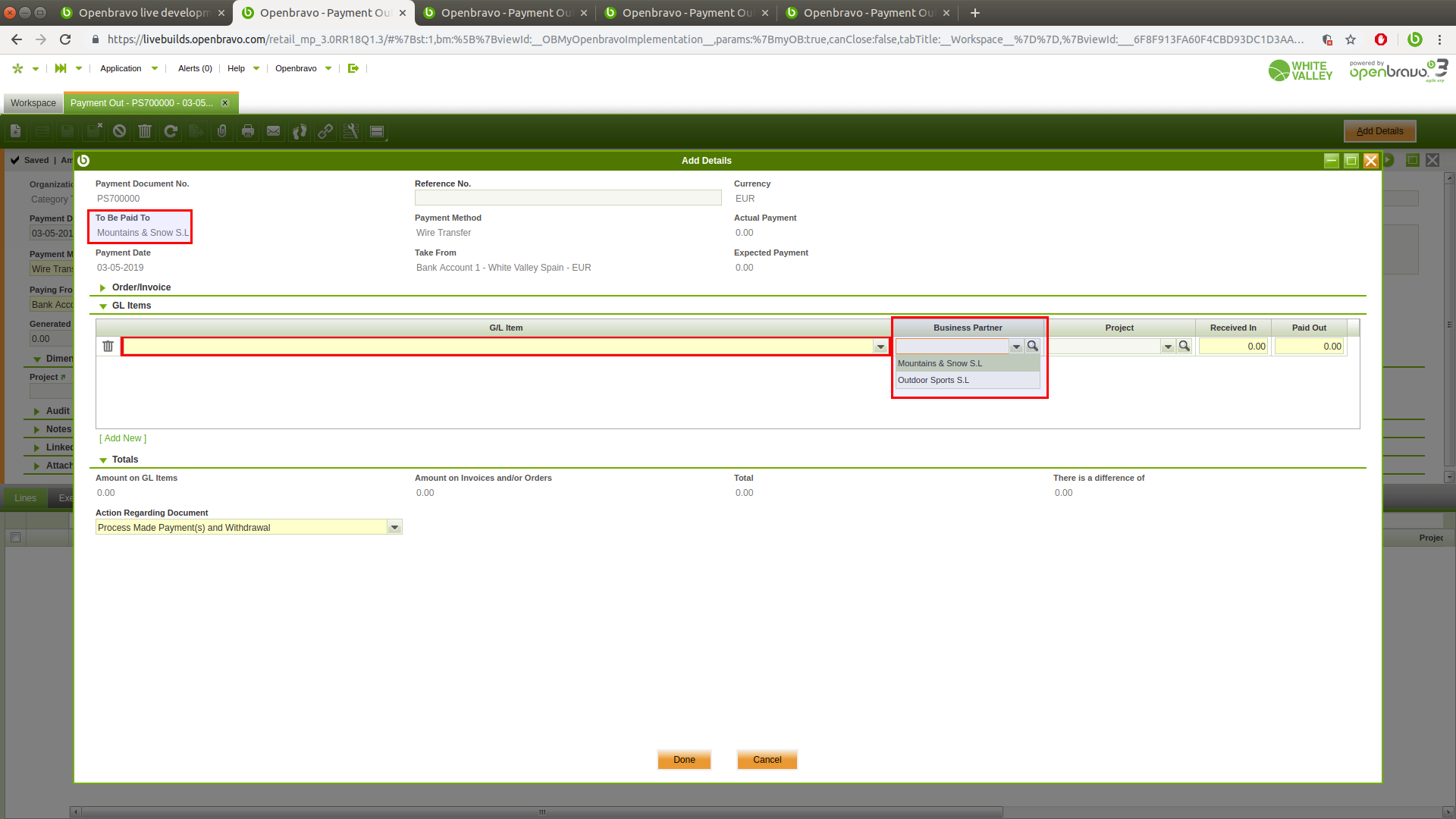 | Description | In Payment Out window, Add Details process, the Business Partner is showing customers when it should show vendors | |||||||