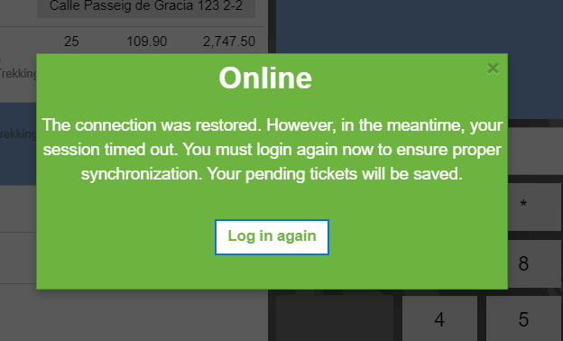 DescriptionWhile working in a High Availability environment, in the case of a Tomcat stop, all terminals connected to such server will switch to offline mode. After the cool down timer fires the connection attempt, the user is required to log in again.