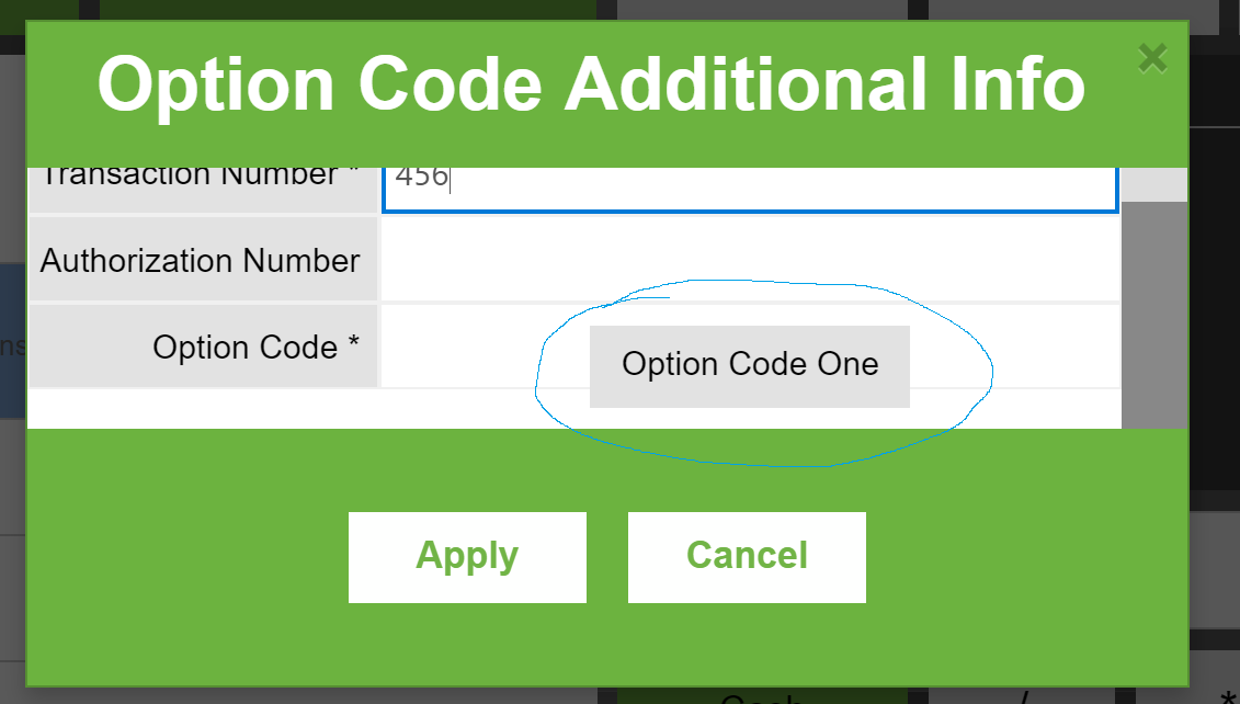 3-Once "Option Code Additional Info" popup is shown, check Option code row and realise its button is wrongly placed.
