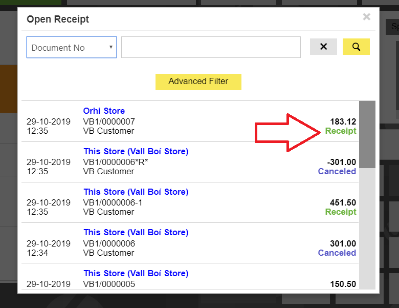 4. Go to Open Receipt and open the created ticket