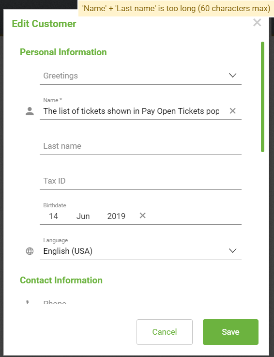 | Summary | 0042281: [19Q4] Using the max length of the Name field when creating a new customer shows a message that is not correct | |||||||||||