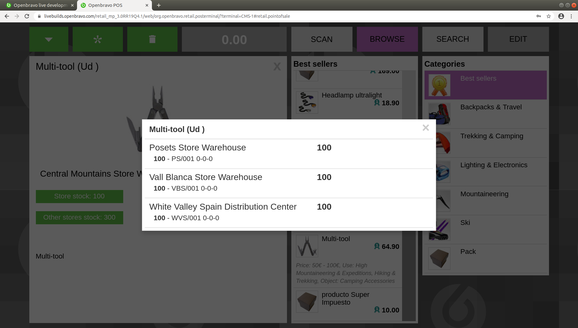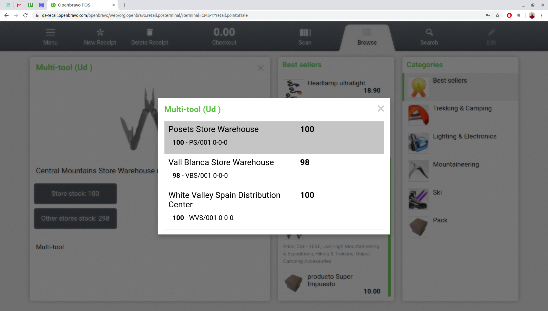 | Steps To Reproduce | 0-Log in POS as vallblanca. 1-Click BROWSE tab. 2-In Best sellers category, add Multi-tool product. 3-Click Store stock button, in that popup, realise the listed elements are not clickable. Click now Other stores stock button. DEFECT: Realise those elements are clickable and there is no action linked to that action. | |||||||