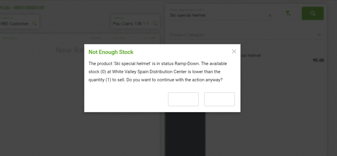 | Steps To Reproduce | In livebuilds retail build, do the following Backoffice: Select Product: 'Ski special helmet', Update Lifecycle Status : Ramp-Down, stock = 0 Set Preference 'Web POS Enable Delivery Modes' = Y Webpos: -new receipt -select product: ' Ski special helmet' ' -RESULT: Pop up 'Not Enough Stock' with blank action buttons Attached screenshot of the issue. Note that the issue is working in 3.0RR19Q4.1 build in livebuilds. | |||||||