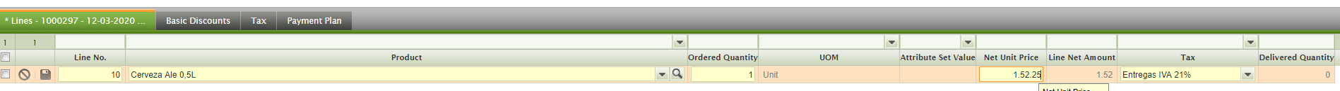 This problem was reproduced sometimes using the calculator application of windows 10, copying and pasting the value in the field Line Net Amount with Ctrl+C and Ctrl+V keys |