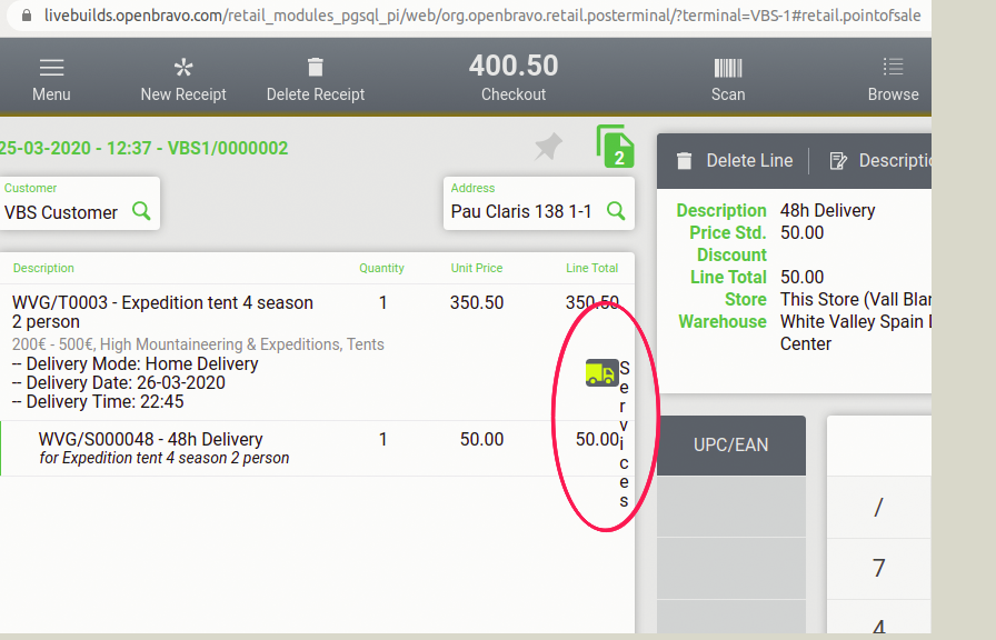 | Steps To Reproduce | - backend, Preference: 'Web POS Enable Delivery Modes' = Y - Webpos (livebuilds.openbravo.com/retail_modules_pgsql_pi - VBS-1) - new receipt - insert product -> WVG/T0003 - Expedition tent 4 season - edit, delivery mode -> Home Delivery, date+time - Apply - RESULT: Wrong display of transport service icon. | |||||||