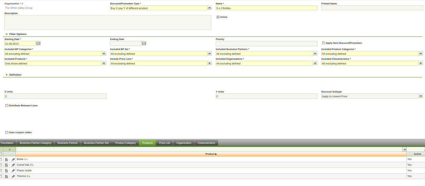 | Summary | 0043694: The discount and promotion Buy X and pay Y (3X2) is not working fine using ungrouped product product. | |||||||