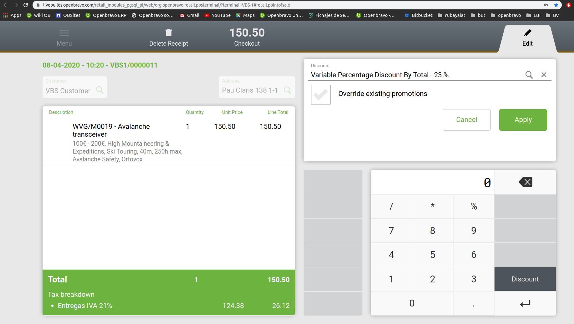 | Steps To Reproduce | As in the screenshot : - on the retail pos live build on VBS-1 - add an item to the ticket - choose discount then -> fixed amount variable discount ( it is the same on different configured discounts that allow to enter a number ) - enter ( or click on ) 0 on the pos virtual keyboard - click the enter button on the pos virtual keyboard | |||||||